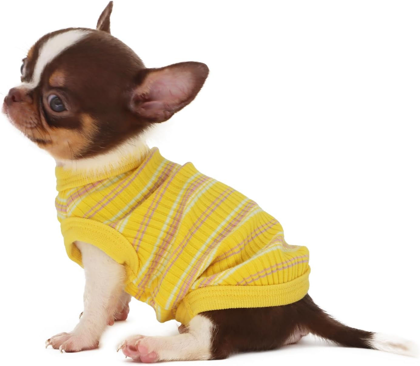 100% Cotton Rib Dog Shirt Vest for Small Dogs Teacup Chihuahua Yorkie Puppy Clothes Tank Tee-Yellow/XXS