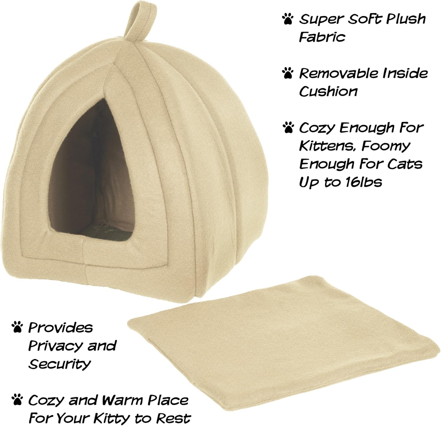 Cat House – Indoor Bed with Removable Foam Cushion – Pet Tent for Puppies, Rabbits, Guinea Pigs, Hedgehogs, and Other Small Animals by (Tan)